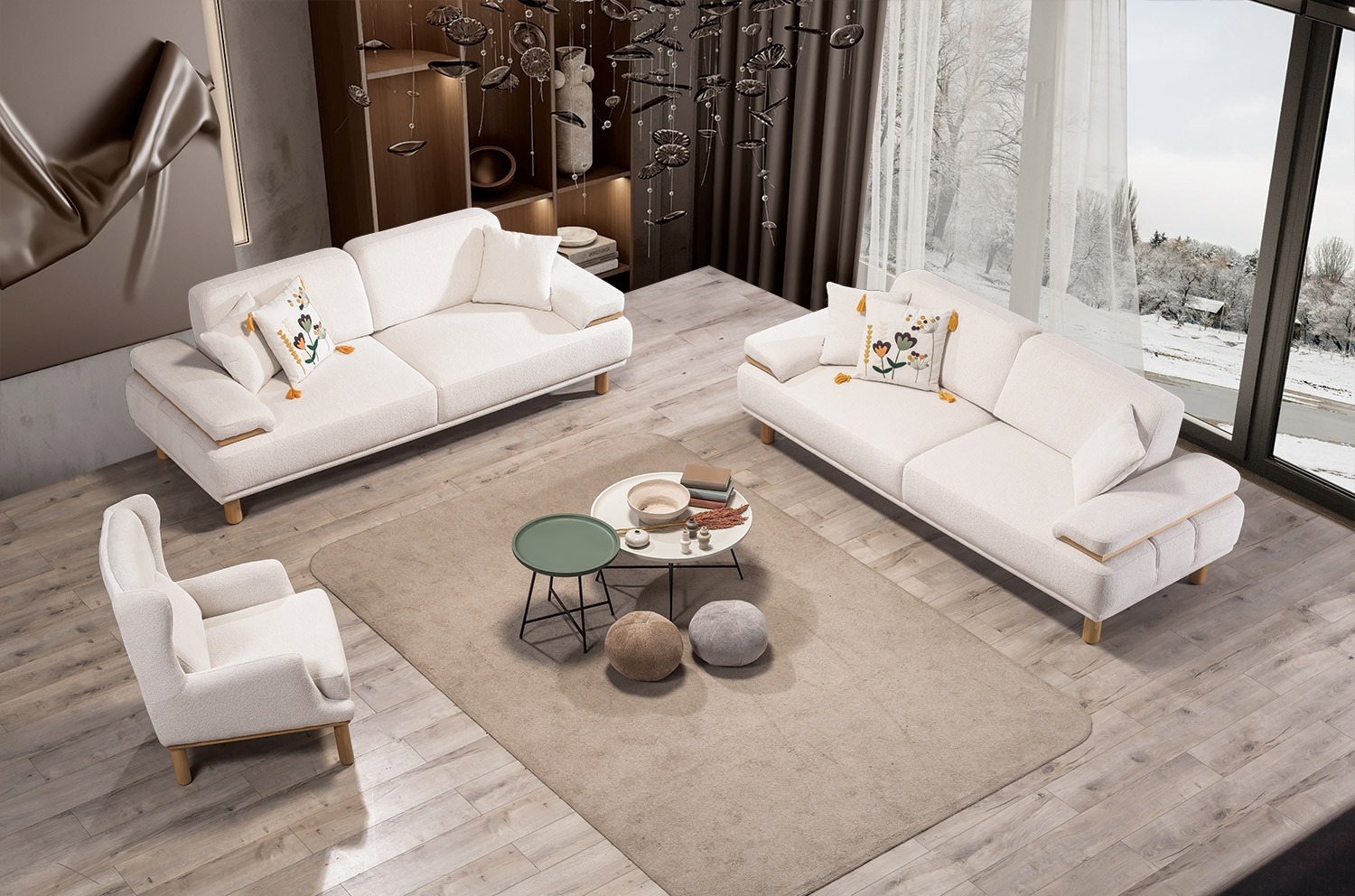 Димензије производа Комплет од 4 дела: ширина 265 цм / висина 87 цм / дубина 95 цм Комплет од 3 дела: ширина 235 цм / висина 87 цм / дубина 95 цм…