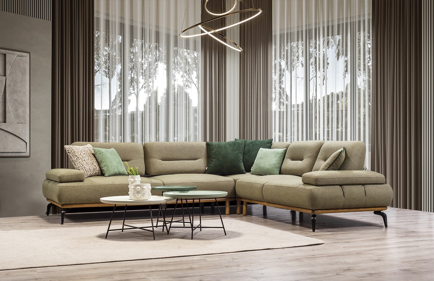 Димензије производа 3+K+2 Угао: ширина 300 × 260 цм / висина 87 цм / дубина 95 цм 2+D Угао: ширина 265…