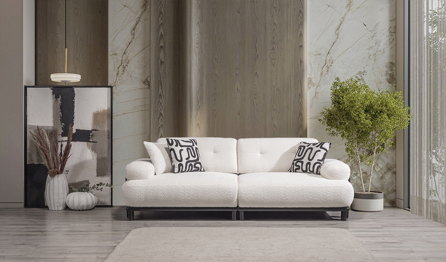 Димензије производа Комплет од 4 дела: ширина 257 цм / висина 85 цм / дубина 95 цм Комплет од 3 дела: ширина 227 цм / висина 85 цм / дубина 95 цм…