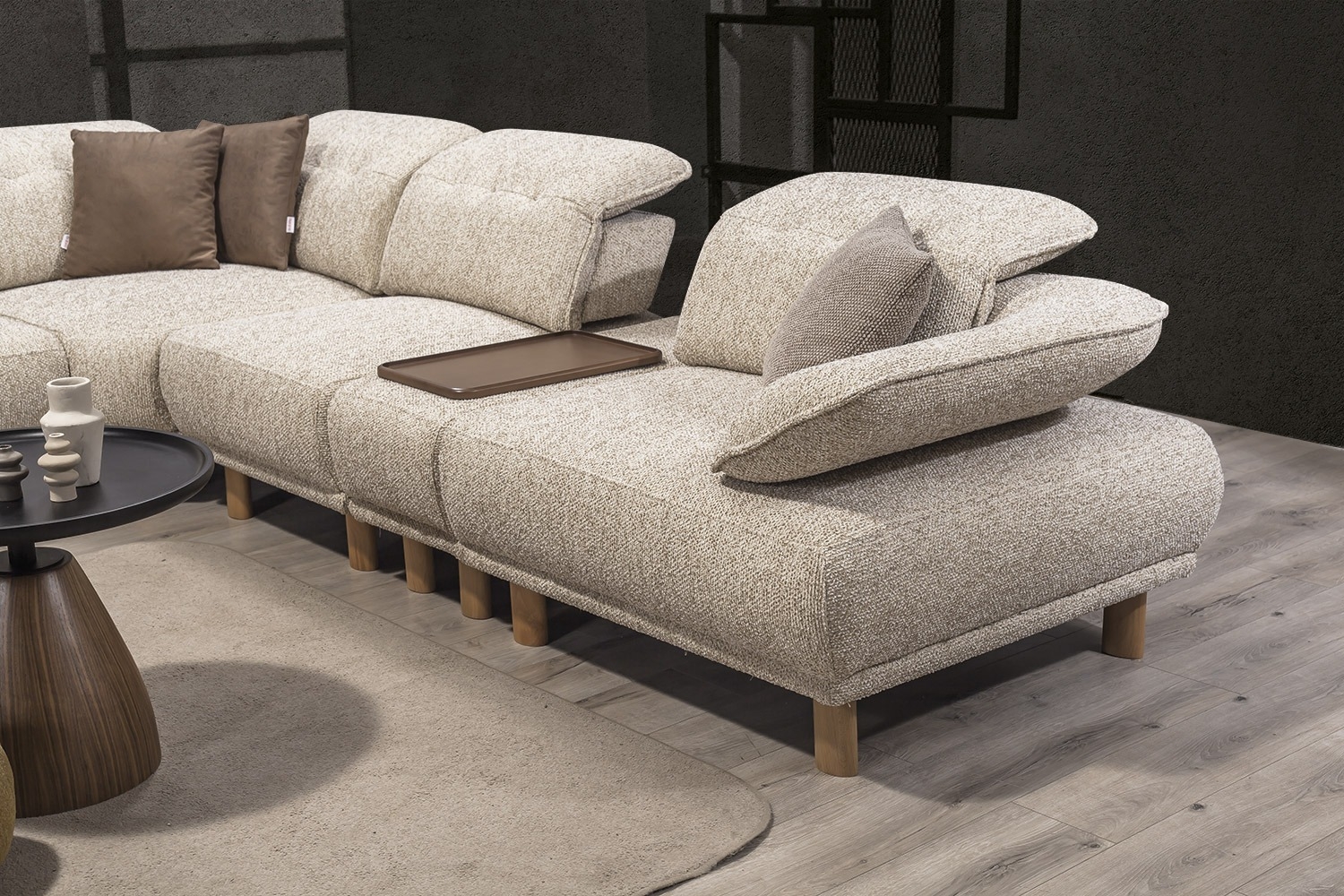 Димензије производа (3+K+2) Угао: ширина 300 × 260 цм / висина 87 цм / дубина 95 цм 2+D Угао: ширина 265…