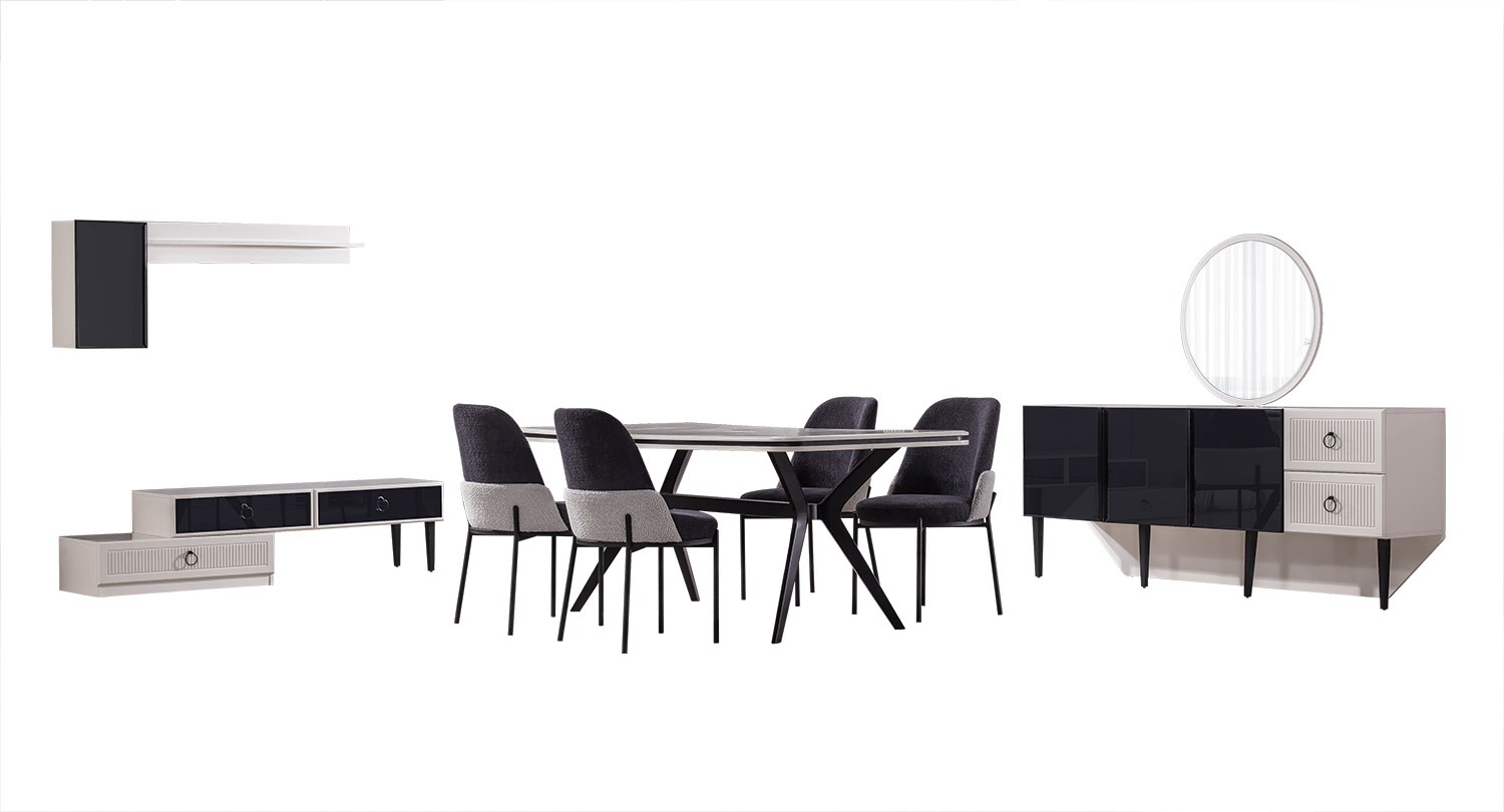 Ürün Ölçüleri Konsol: genişlik 208 cm / yükseklik 82 cm / derinlik 48 cm Sandalye: genişlik 51 cm / yükseklik 87 cm / derinlik 60…